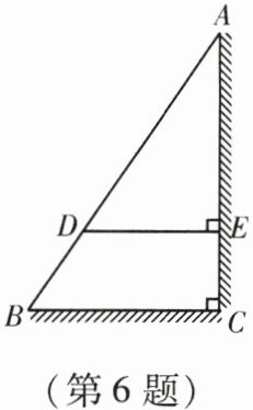 6. 如图,长梯 $AB$ 斜靠在墙壁上,梯脚 $B$ 距墙 $80$ cm,梯上一点 $D$ 距墙 $70$ cm,量得 $BD$ 的长为 $55$ cm,求梯子的长。