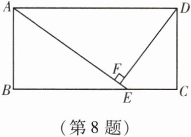 8. 如图,在矩形 $ABCD$ 中,$E$ 为 $BC$ 上一点,$DF\perp AE$ 于点 $F$。