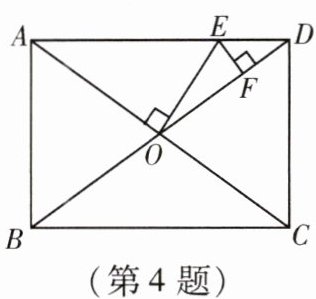 4. 如图,矩形 $ ABCD $ 的对角线 $ AC $,$ BD $ 交于点 $ O $,$ AB = 6 $,$ BC = 8 $,过点 $ O $ 作 $ OE \perp AC $,交 $ AD $ 于点 $ E $,过点 $ E $ 作 $ EF \perp BD $,垂足为 $ F $,则 $ OE + EF $ 的值为(