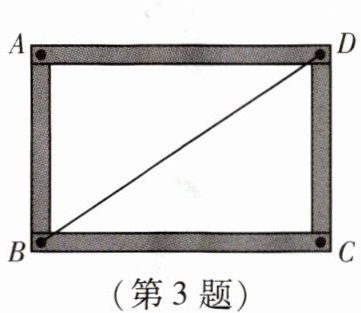 3. 如图,小贤为了体验四边形的不稳定性,将四根木条用钉子钉成一个矩形框架 $ ABCD $,$ B $ 与 $ D $ 两点之间用一根橡皮筋拉直固定,然后向右扭动框架,观察所得四边形的变化,下列判断错误的是(