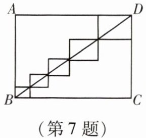 7. 如图,在矩形 $ ABCD $ 中,$ AB = 3 $,$ BC = 4 $,则图中 $ 5 $ 个小矩形的周长之和为
