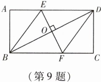 9. (2023·怀化中考)如图,在矩形 $ ABCD $ 中,$ O $ 是其对角线 $ BD $ 的中点,过点 $ O $ 作 $ EF \perp BD $,分别交 $ AD $,$ BC $ 于点 $ E $,$ F $.