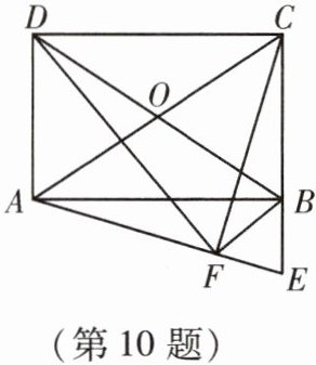 10. 如图,在矩形 $ ABCD $ 中,$ AC $,$ BD $ 交于点 $ O $,$ E $ 是 $ CB $ 延长线上的一点,$ CF \perp AE $,垂足为 $ F $,求证:$ DF \perp BF $.