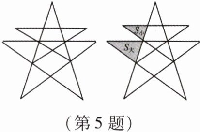 5. 某电力公司的标识及结构图如图所示,设计者用一大一小两颗星巧妙地重叠组合,自然地把高压输电塔与五角星联系在一起,那么结构图中的两个阴影三角形的面积之比 $\frac{S_{小}}{S_{大}}$ 为(