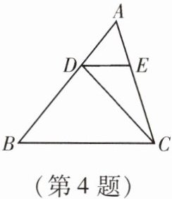 4. 如图,$D$,$E$ 分别为 $\triangle ABC$ 的边 $AB$,$AC$ 上的点,且 $DE// BC$,$\angle DCB=\angle A$,把每两个相似的三角形称为一组,那么图中共有