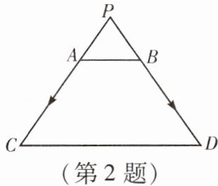 2. 如图,电灯$P$在横杆$AB$的正上方,$AB$在灯光下影子为$CD$,$AB// CD$,$AB = 1.5m$,$CD = 4.5m$,点$P$到$CD$的距离为$2.7m$,则$AB$与$CD$之间的距离是