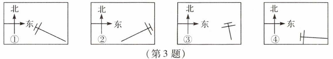 3. 一根电线杆在一天中不同时刻的影长如图所示,试按其一天中发生的先后顺序排列,正确的是(