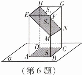6. 如图,长方体的一个底面$ABCD$在投影面$\alpha$上,$M$,$N$分别是侧棱$BF$,$CG$的中点,矩形$EFGH$与矩形$EMNH$的投影都是矩形$ABCD$,设它们的面积分别是$S_{1}$,$S_{2}$,$S$,则$S_{1}$,$S_{2}$,$S$的大小关系是