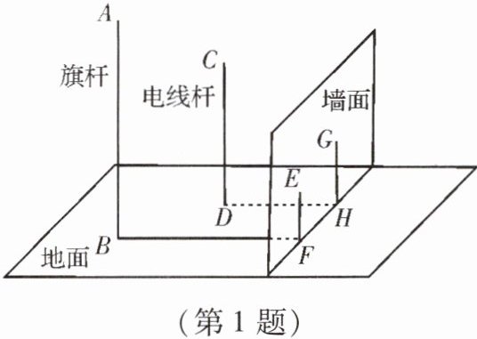 1. 如图,在一面与地面垂直的围墙的同侧有一根高$10m$的旗杆$AB$和一根高度未知的电线杆$CD$,它们都与地面垂直,为了测得电线杆的高度,一小组的同学进行了如下测量:某一时刻,在太阳光照射下,旗杆落在围墙上的影子$EF$的长为$2m$,落在地面上的影子$BF$的长为$10m$,而电线杆落在围墙上的影子$GH$的长为$3m$,落在地面上的影子$DH$的长为$5m$,依据这些数据,该小组的同学计算出了电线杆的高度.