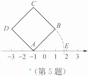 5. 如图,面积为$6的正方形ABCD的顶点A$在数轴上,且表示的数为$-1$,若点$E$在数轴上(点$E在点A$的右侧),且$AB = AE$,则点$E$表示的数为【