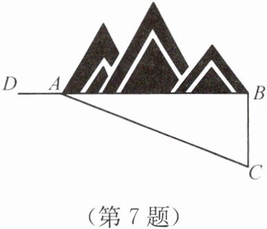 7. 某地地势南北高、中间低,有高原、山地、平原、盆地等多种地形.某工程队现须穿过某座大山修一条隧道AB,如图,为了测量隧道AB的长度,在山的另一侧水平地面上取了一点C,在隧道BA的延长线上取了一点D,经测量得知,∠CAD-∠C= 90°,AC= 500m,BC= 140m,请你求出隧道AB的长.