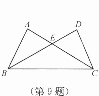9. 如图,已知$AC$、$BD相交于点E$,$\angle A= \angle D$,要添加一个条件使得$\triangle ABC\cong\triangle DCB$,下列所添加的条件中不正确的是【
