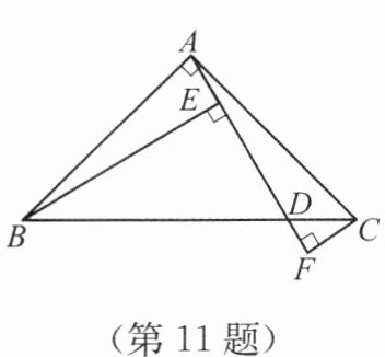 11. (重庆中考)如图,在$Rt\triangle ABC$中,$\angle BAC= 90^{\circ}$,$AB= AC$,$D为边BC$上一点,连结$AD$。过点$B作BE\perp AD于点E$,过点$C作CF\perp AD交AD的延长线于点F$。若$BE= 4$,$CF= 1$,则$EF$的长为______