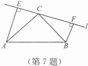 7. 如图,在 $ \triangle ABC $ 中,$ AC = BC $,直线 $ l $ 经过顶点 $ C $,过 $ A $、$ B $ 两点分别作 $ l $ 的垂线 $ AE $、$ BF $,垂足分别点 $ E $、$ F $,$ AE = CF $。求证:$ \angle ACB = 90^{\circ} $。