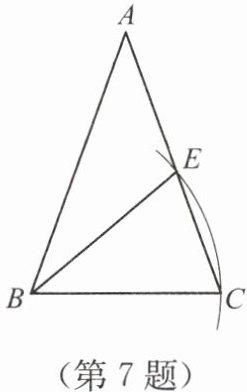 7. 如图,已知等腰三角形$ABC$,$AB = AC$,$\angle A = 40^{\circ}$,若以点$B$为圆心、$BC$长为半径作弧,交腰$AC于点E$,求$\angle ABE$的度数。