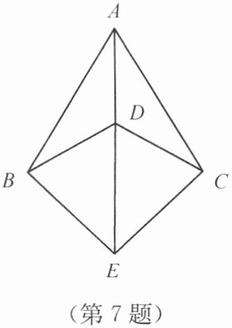 7. 如图,$ AB = AC $,$ DB = DC $,$ E $ 是 $ AD $ 延长线上的一点。问:$ BE $ 与 $ CE $ 相等吗?请说明理由。