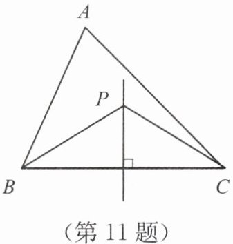 11. 如图,在 $ \triangle ABC $ 中,$ \angle ABC $ 的平分线与 $ BC $ 的垂直平分线交于点 $ P $,连结 $ CP $。若 $ \angle A = 75^{\circ} $,$ \angle ABC = 62^{\circ} $,则 $ \angle ACP $ 的度数为