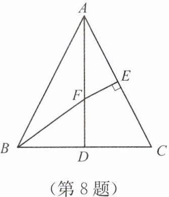 8. 如图,在 $ \triangle ABC $ 中,$ AB = AC $,$ AD $ 是 $ \triangle ABC $ 的角平分线,$ FE $ 是 $ AC $ 的垂直平分线,交 $ AD $ 于点 $ F $,连结 $ BF $。求证:$ AF = BF $。