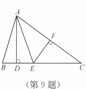 9. 如图,在 $ \triangle ABC $ 中,$ EF $ 垂直平分 $ AC $,交 $ AC $ 于点 $ F $,交 $ BC $ 于点 $ E $,$ AB = AE $,且 $ AD \perp BC $,若 $ \triangle ABC $ 的周长为 $ 16 $,$ AC = 6 $,则 $ DC $ 为 【