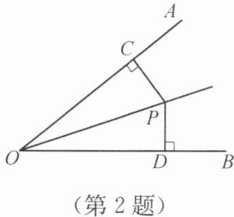 2. 如图,若 $ OP $ 平分 $ \angle AOB $, $ PC \perp OA $, $ PD \perp OB $,垂足分别是 $ C $、 $ D $,则下列结论中错误的是【