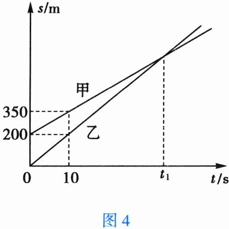 5. 甲、乙两辆汽车在平直公路上同向匀速行驶,由两车的s-t图像(如图4所示)可知,乙车速度为