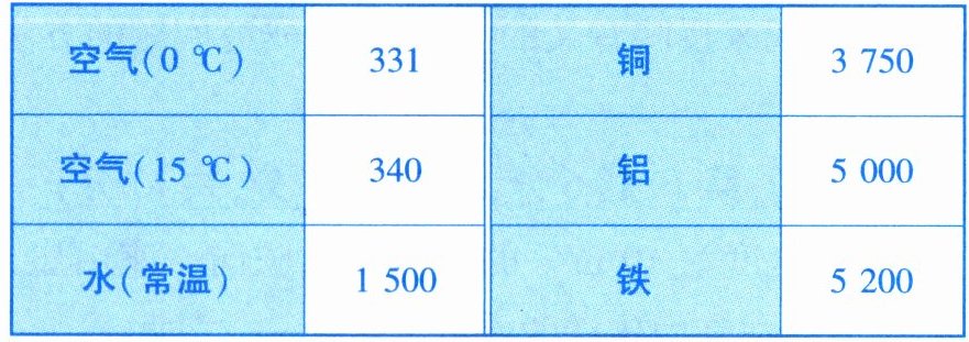 |介质|$v/(m·s⁻^1)$|介质|$v/(m·s⁻^1)$|