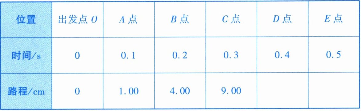| 路程/cm | 0 | 1.00 | 4.00 | 9.00 |
