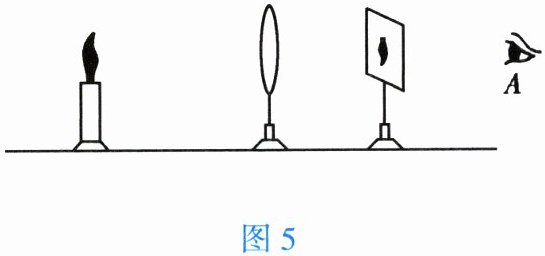 6. 在“探究凸透镜成像规律”的实验中,如图5所示,我们通过光屏能看到倒立的实像,如果没有光屏,该实像