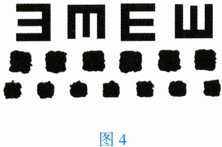 5. 图4所示是一位同学到医院检查视力时右眼所看到的视力表的情形,这只眼睛存在的视力问题是