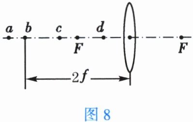 12. 如图8所示,a、b、c、d是距凸透镜不同距离的四个点,F为焦点。下列几种光学仪器的成像原理与物体在不同点时的成像情况相对应,下列说法正确的是【