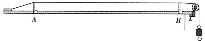 (2)组装材料:如图 3.5 - 1 所示,将弦的一端固定在力学轨道一端,另一端通过小滑轮挂上钩码,使琴弦拉紧,再用 A、B 两个可滑动挡片将弦支起。