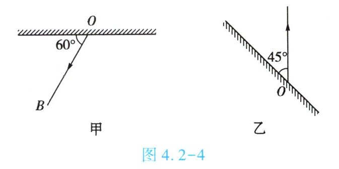 3. (★★)完成图 4.2 - 4 所示光路图,并标出反射角的度数。