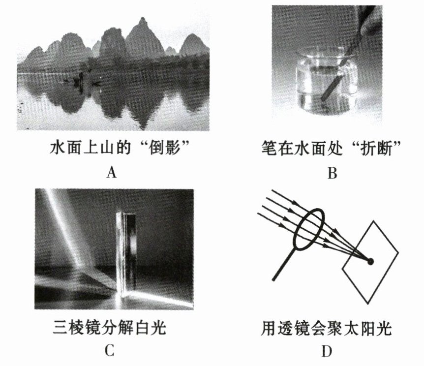 10. 如图 8 所示的四种现象中,与其他三种现象形成原因不同的是【