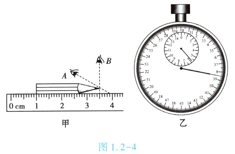 7. (★★)如图1.2-4所示,图甲中用刻度尺测量物体的长度,读数正确的是