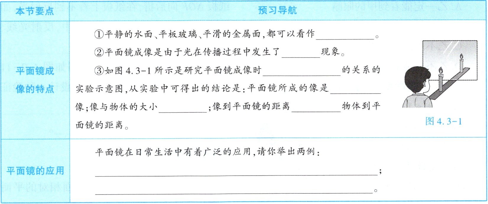 现象。③如图 4.3 - 1 所示是研究平面镜成像时