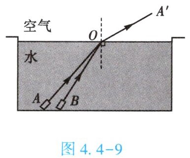 7. (★★★)某同学在做探究“光的折射特点”的实验,图 4.4 - 10 是光从空气射入水中时的光路图。实验中发现,入射光线、折射光线和法线在同一平面内,折射光线和入射光线分别位于法线的两侧。通过实验还得到如下数据: