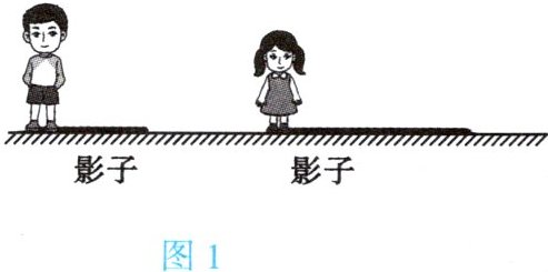 1. 连接小明头部与他的影子顶端,形成一条直线。