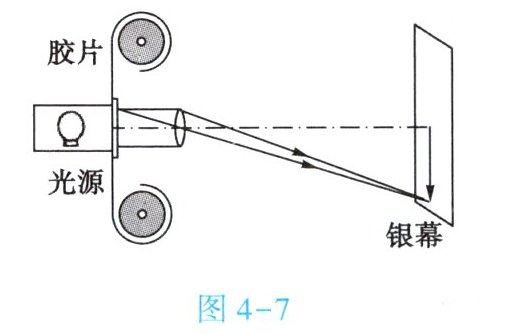 3.(★★)图4 - 7为电影放映机原理示意图,为了让观众看到清晰的实像,应将胶片放在距离透镜