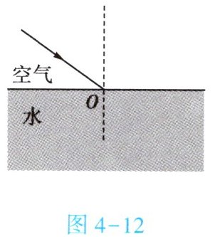 8.(★★★)如图4 - 12所示,一束光从空气斜射入水中,同时在水表面发生反射,请画出反射光线及折射光线的大致位置。