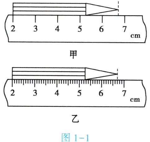 1. (★★) (1) 如图 1 - 1 所示,用两种不同规格的刻度尺测量同一支铅笔的长度,图甲中铅笔的长度是