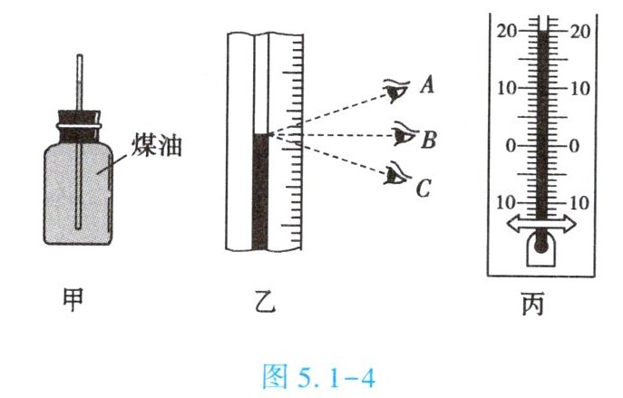 3. (★★)二十四节气中的“小暑、大暑、处暑、小寒、大寒”象征了温度的变化,要准确地判断温度的高低,就要用温度计进行测量。如图5.1-4甲是一个自制温度计,把它从热水中取出,再放入冷水中,可观察到细管中液面的位置缓慢