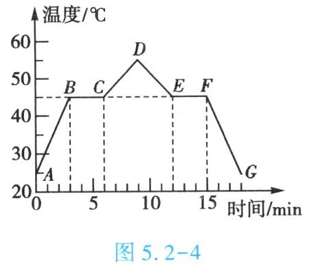 3. (★★)如图5.2-3所示,为某初中物理实验小组在加热某种固态物质使其熔化的过程中记录的温度随时间变化图像,则下列选项判断不正确的是【
