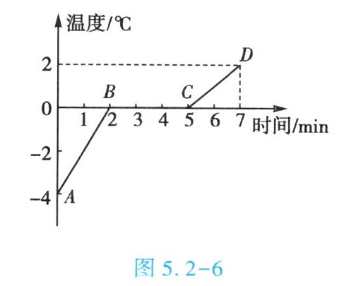(4)根据实验数据,小明绘制出了被测物质的温度随时间变化的图像,如图5.2-6所示。分析图像可知,冰熔化过程共用了