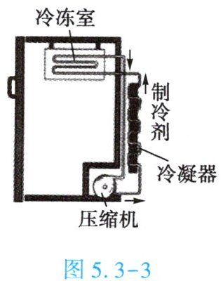 4. (★★★)如图 5.3 - 3 所示是电冰箱的工作原理示意图,压缩机工作时,强迫制冷剂在电冰箱内外的管道中不断地进行液化和汽化的循环,达到制冷的目的。关于制冷剂在电冰箱内外的循环过程,下列说法正确的是【