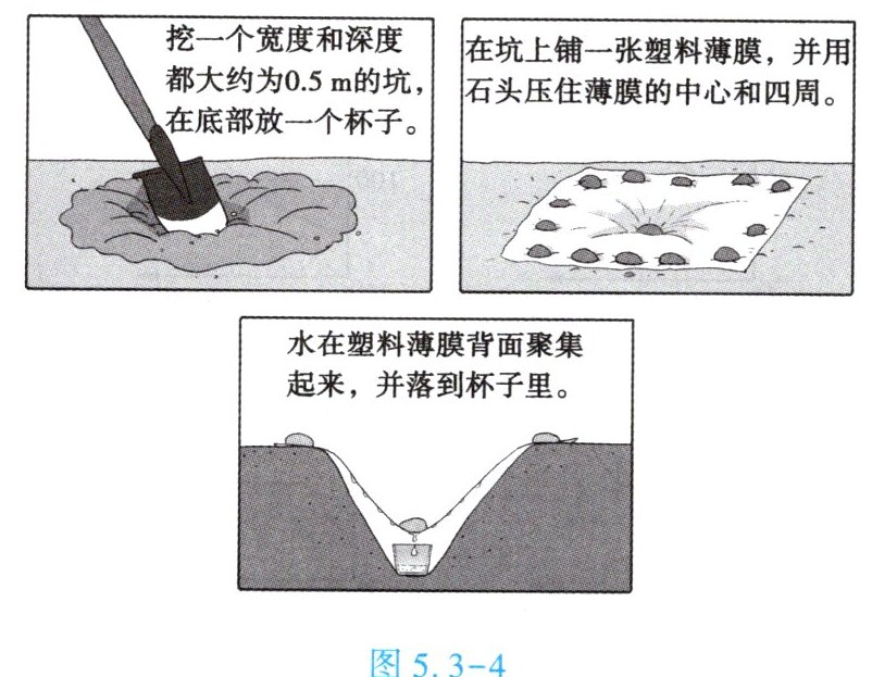 5. (★★★)在沙漠中,可以利用图 5.3 - 4 所示的方法应急取水,此过程中发生的物态变化有【