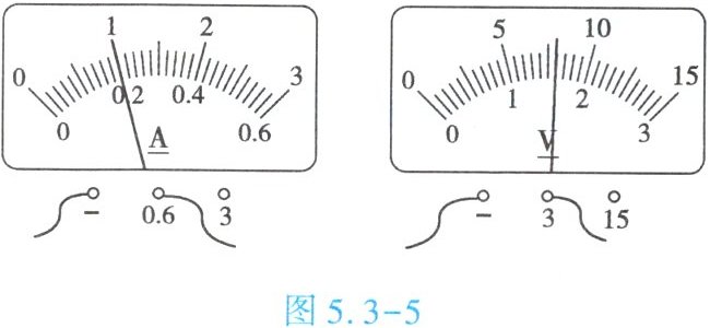 (2) 某次测量,电流表与电压表的示数如图 5.3 - 5 所示,计算此时小灯泡灯丝的阻值为______$\Omega$。