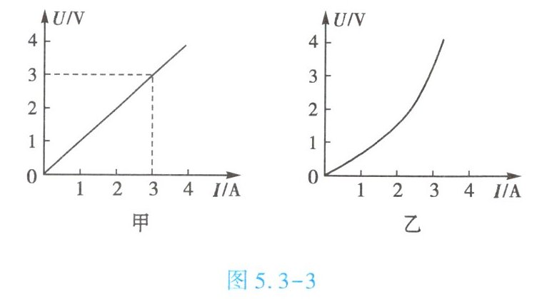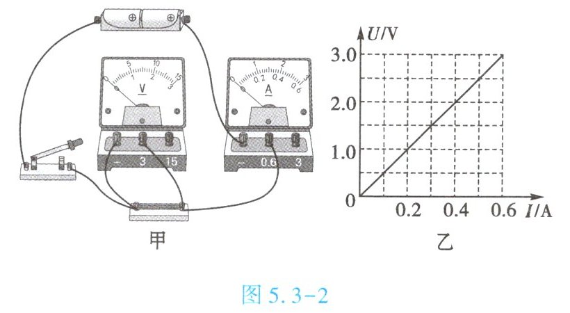 。经改正后,用测得的数据绘制出的图像如图 5.3 - 2 乙所示,该待测电阻的阻值为5