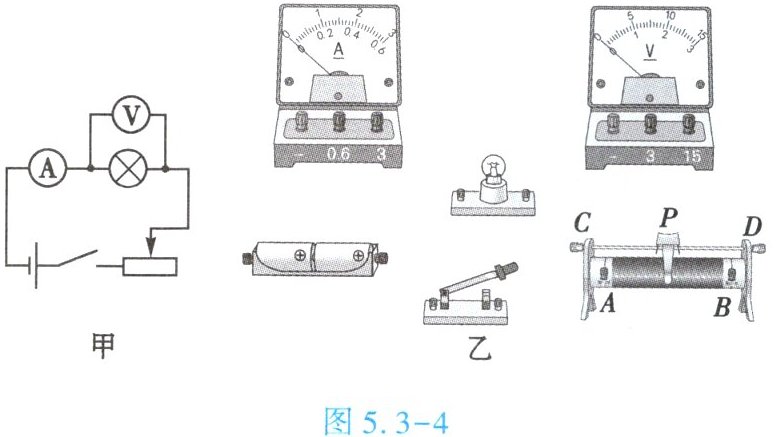 (1) 根据电路图,在图 5.3 - 4 乙中用笔画线代替导线连接实物电路。