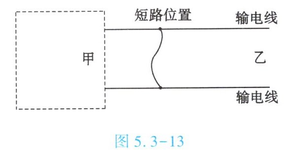 如图 5.3 - 13 所示,甲、乙两地相距$L$千米,输电线每千米的电阻是$R_{0}$,现输电线某处发生了短路,为了尽快确定短路位置,机智的检修员在甲地利用实验室常用的电学仪器,根据伏安法进行了检测。(其余部分电阻忽略不计)