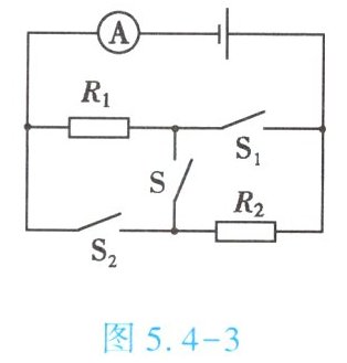 6. ($\star\star$)如图 5.4 - 3 所示,电源电压为$12V$且保持不变,$R_{1} = 10\Omega$。只闭合开关$S$时,电流表的示数为$0.3A$,则$R_{1}两端的电压U_{1} = $